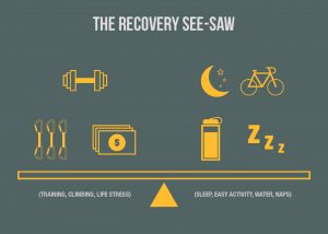 A little while back, I wrote an article about Recovery Training, where I tried to underscore the idea that you should take your recovery as seriously as you do your climbing and training. We all love to add and add and add to our training in hopes that somehow the throttling will make us better at the sport, but many of us slip-up on the recovery part. Ideally, you’d add as much recovery to one side of the “see-saw” at you’d add training on the other.